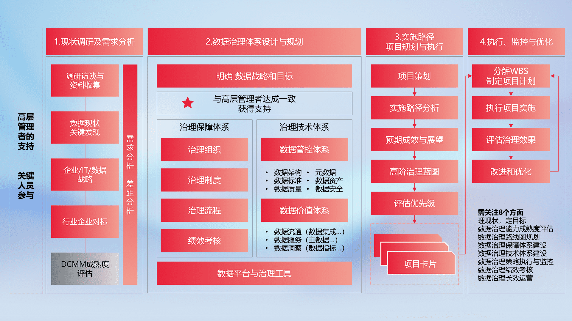 制定并执行统一的数据标准,,,,规范数据定义和格式,,消除冗余和不一致性,,,实现跨部门和跨系统的数据一致性,,,,为企业提供标准化的数据基础。。。